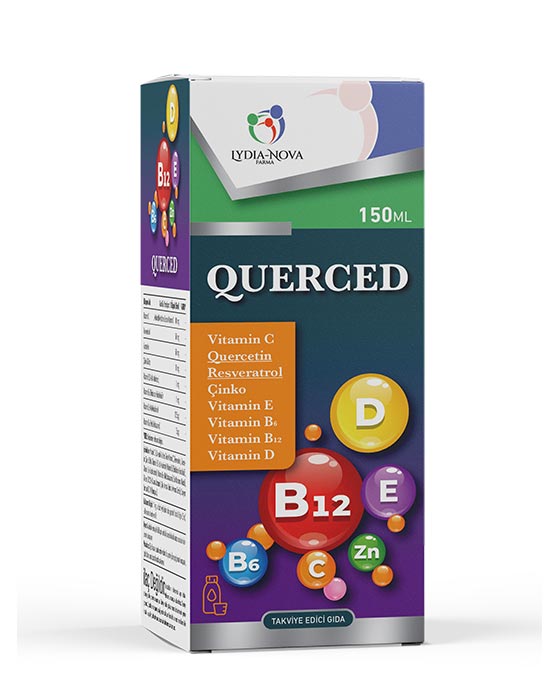 Querced, vitamin C, kuersetin, resveratrol ve çinko sülfat içeren; vitamin E, vitamin B6, vitamin D3 ve vitamin B12 ile desteklenmiş sıvı formda bir takviye edici gıdadır. Dengeli içeriğiyle günlük beslenme rutinine pratik bir kullanım sunmak amacıyla formüle edilmiştir.